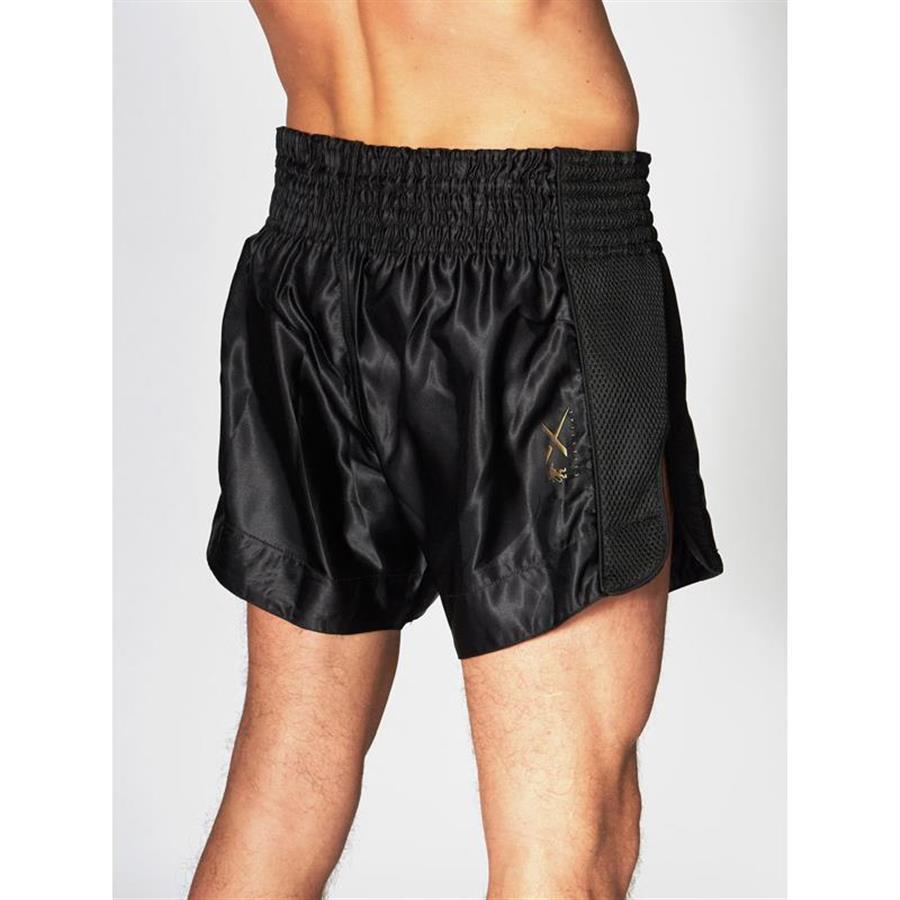 The elegance of black, the style of gold details, the tradition of an Italian brand … in one word: Essential. Versatile kick-thai shorts in satin, with mesh panels on sides. Special gold label stitched on the super stretch belt, which ensures support and maintenance over the time. Classic thai tear to facilitate legs’ shots.