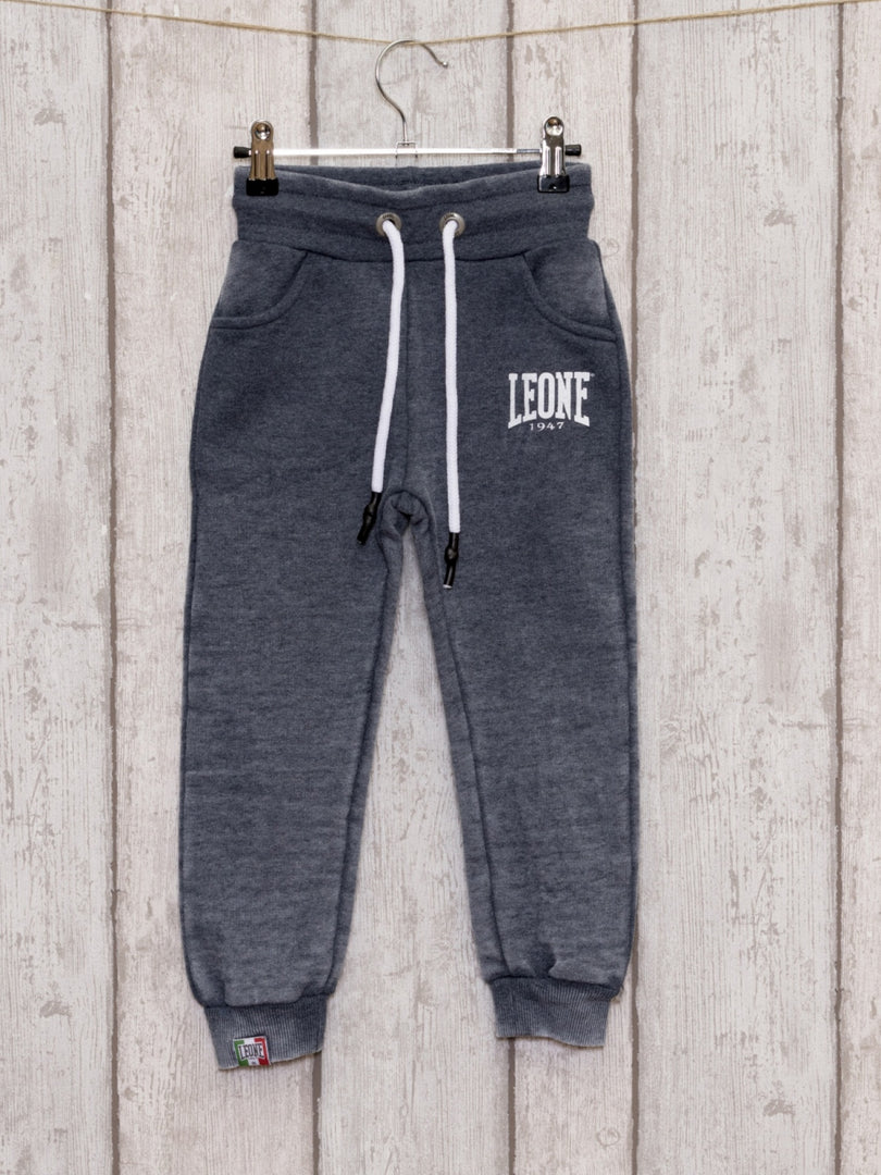 Boy pants Leone 1947 Apparel Denim. Not brushed fleece, burn out garment finishing, elastic tape inside waistband and ankles rib matching color