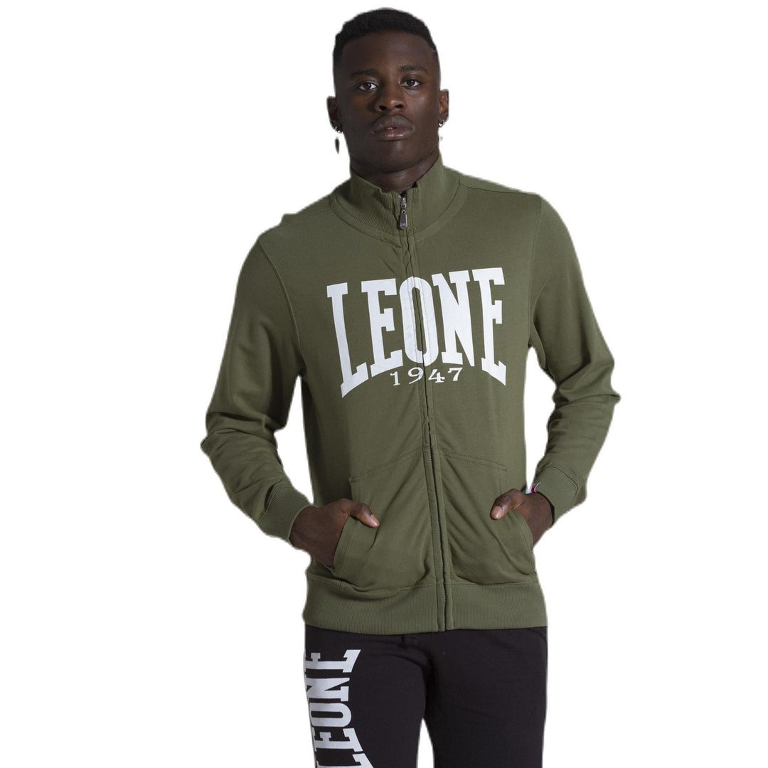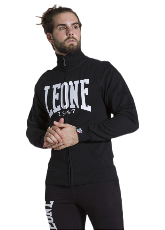Man track full zip Leone 1947 Apparel Light Big Logo Not brushed fleece, water logo print, vislon zip, metal puller personalized, woven label Leone 1947 Apparel