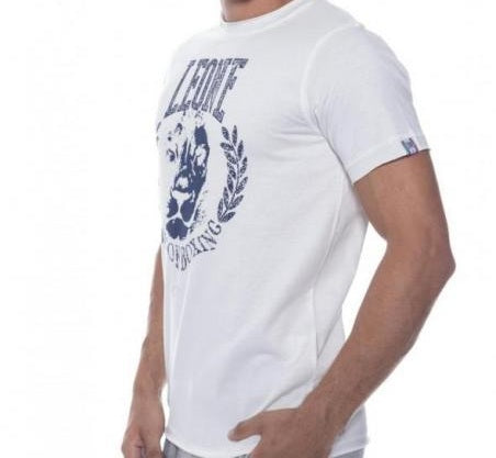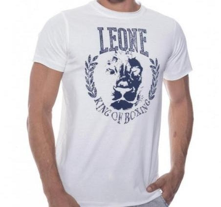 Man T-shirt Leone 1947 Apparel King of Boxing, crewneck, short sleeves. Jersey T-shirt, top stitchings and neck sweatband matching color, collar, sleeve hems and bottom raw cut edges. Print Leone 1947 King of Boxing on chest, personalized labels on inner back neck line and Leone 1947 labels on left bottom sleeve and bottom back.