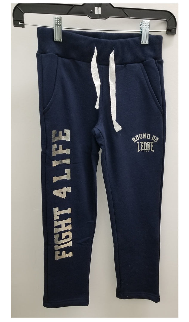 Boy sweatpants Leone 1947 Apparel Basic line, soft and easy to wear, made of brushed fleece, 100% cotton. At the bottom and on the waist, it has an elastic rib that guarantees perfect stability of the garment and total freedom of movement. It presents the institutional Leone 1947 Giant logo printed on the leg and shiney silver labels.