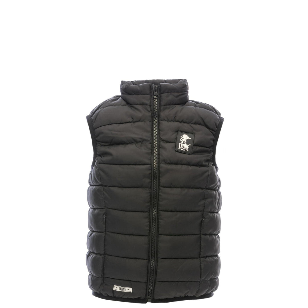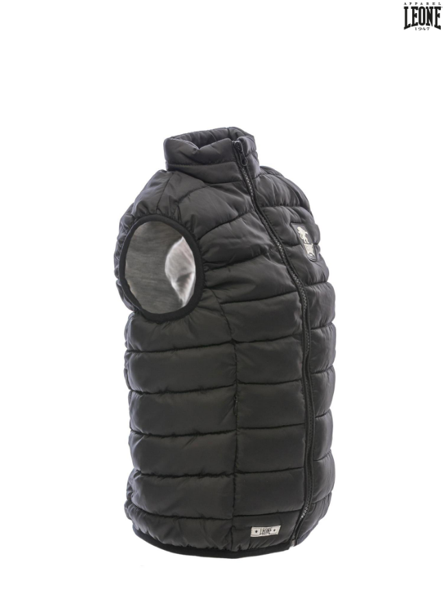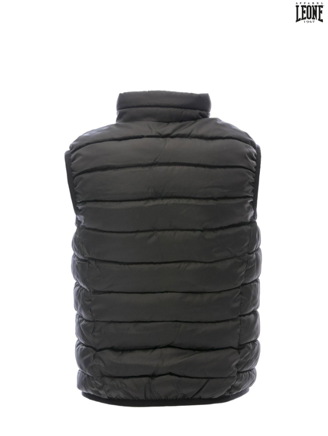 Boy vest down-jacket full zip Leone 1947 Apparel Basic line in waterproof nylon, excellent for outdoor activities. This garment has a melange grey jersey lining inside, a silicon patch on heart side depicting the Leone 1947 logo and the iconic lion. It is also embellished with woven labels.