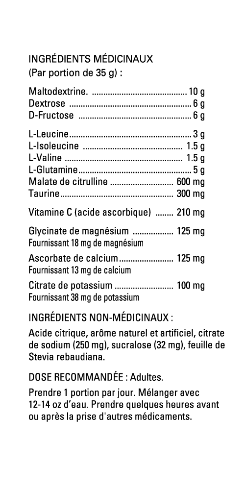 Contains 5 g of L-Glutamine, an amino acid that helps maintain the health of the immune system following periods of physical stress.