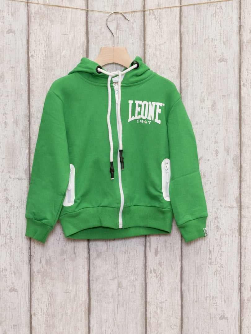 Boy hooded ZIPPED Leone 1947 Apparel, soft and easy to wear, made of brushed fleece, . At the bottom and on the wrists, it has an elastic rib that guarantees perfect stability of the garment and total freedom of movement.