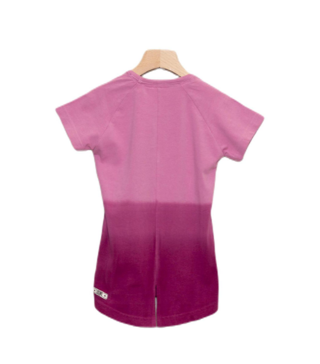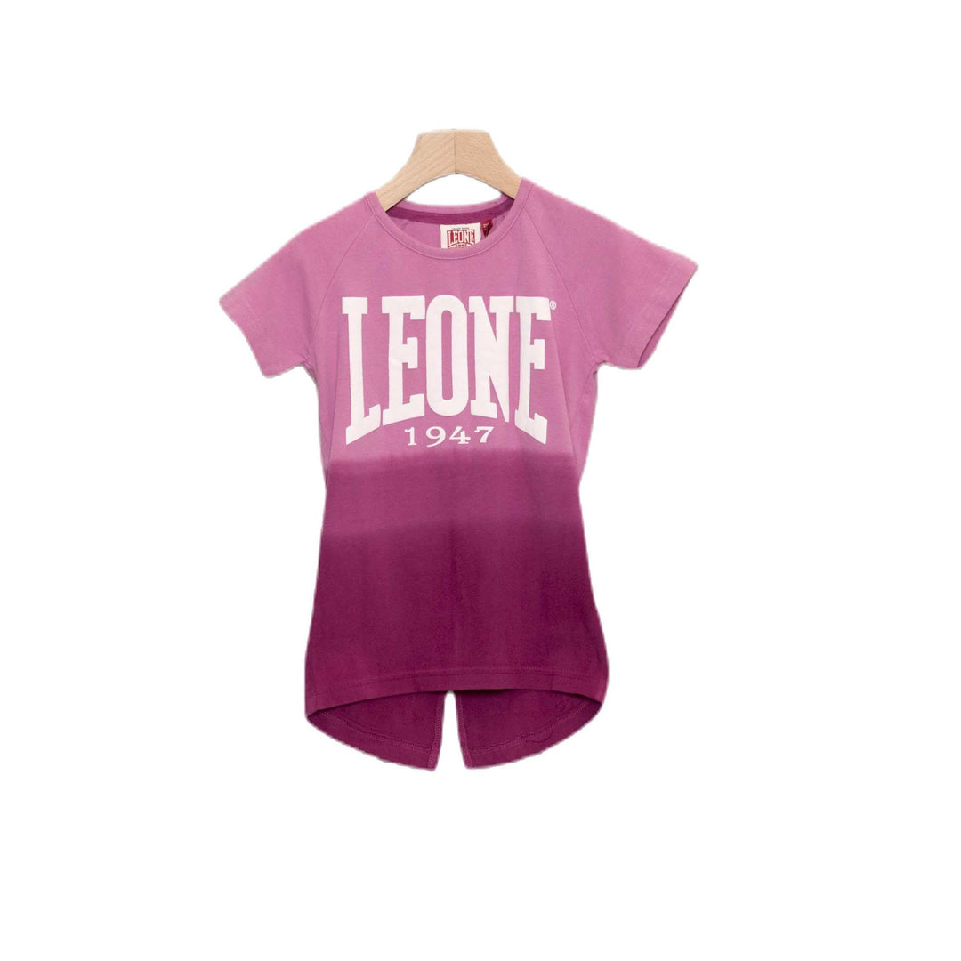 Girl T-shirt Leone 1947 Apparel Bicolor, short sleeves. Stretched jersey T-shirt, garment dip dye, boat neck line, raglan sleeves, neck sweatband matching color. Print on chest, personalized labels on inner back neck line and Leone 1947 label on bottom back.