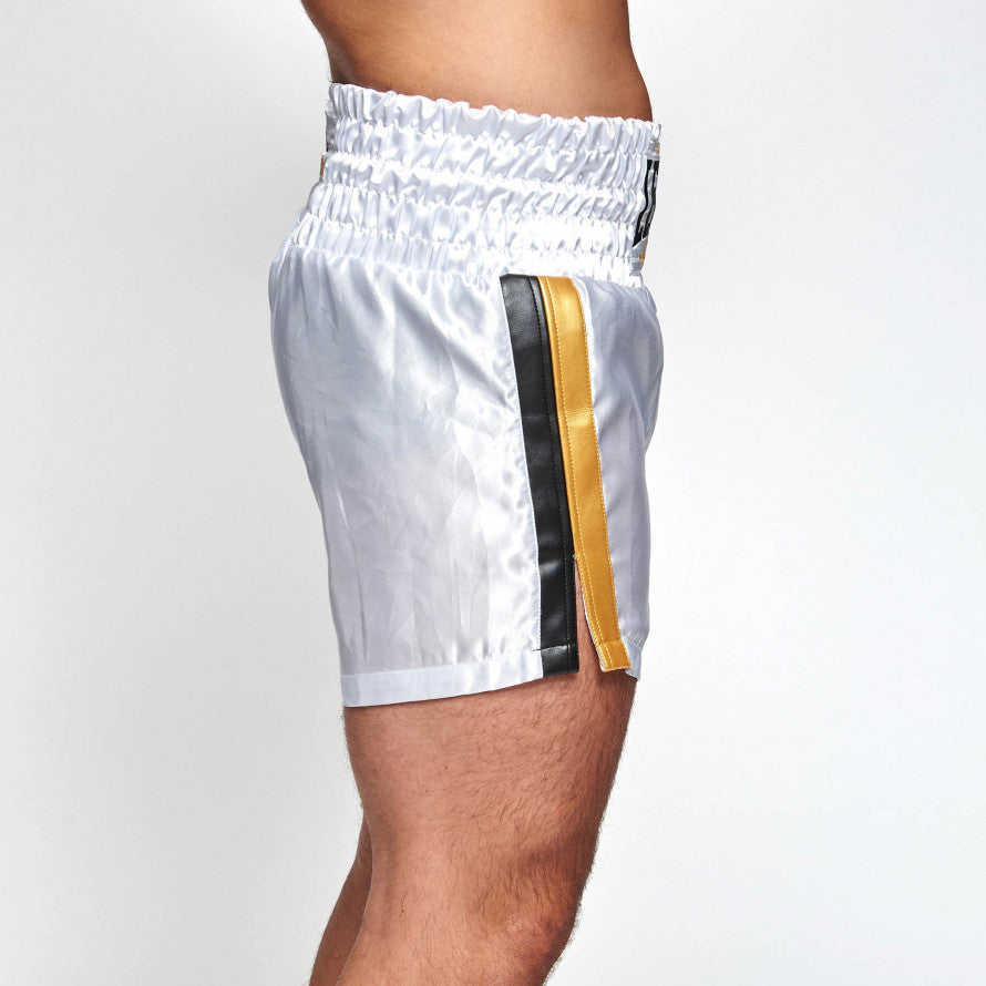 Short-cut satin boxing shorts perfect for professional boxers who want to dress a vintage item during matches and workouts.