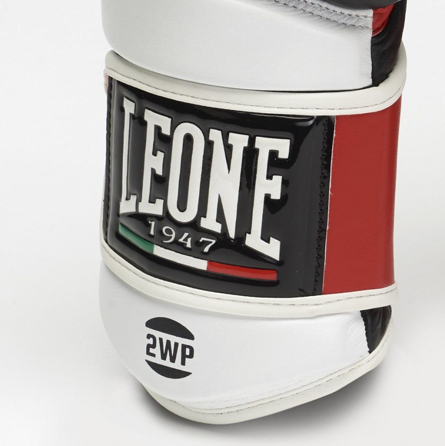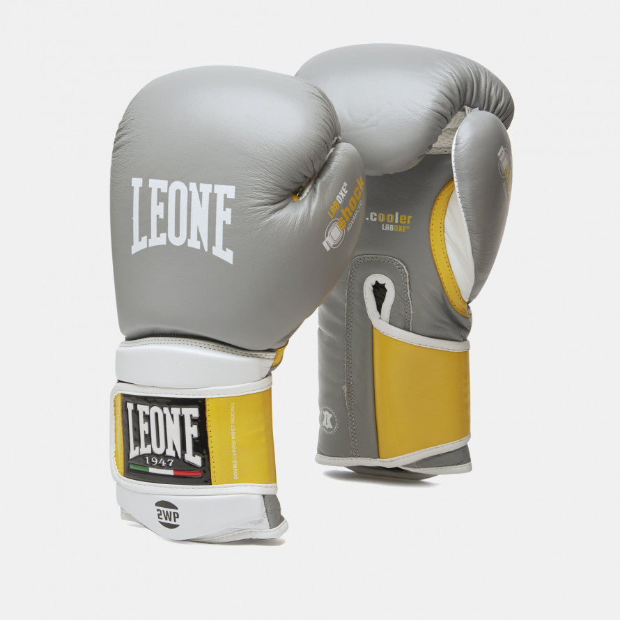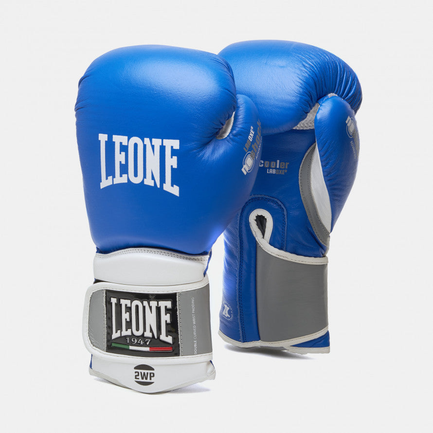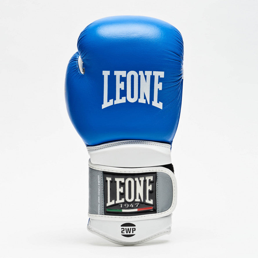 Leather glove characterized by a pre molded PU padding and by the curved cuff made up of two innovative parts that ensure stability and double protection on the wrist (2WP).