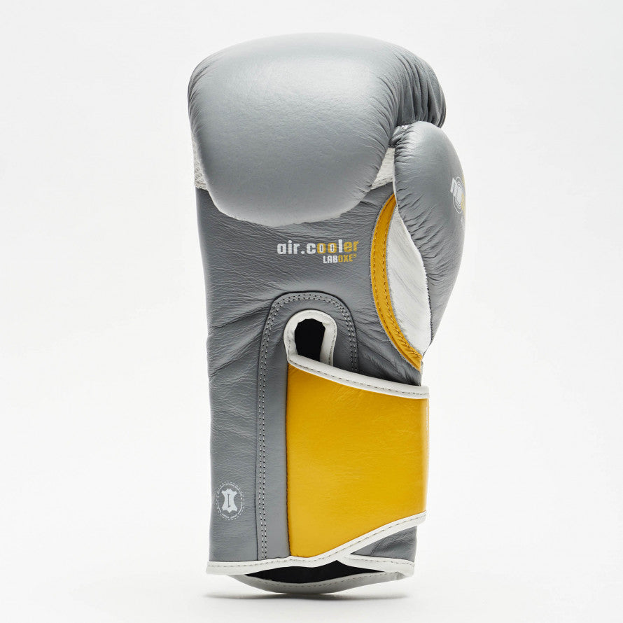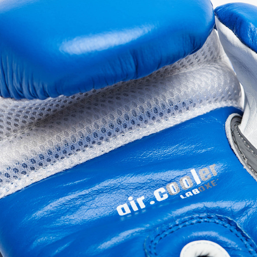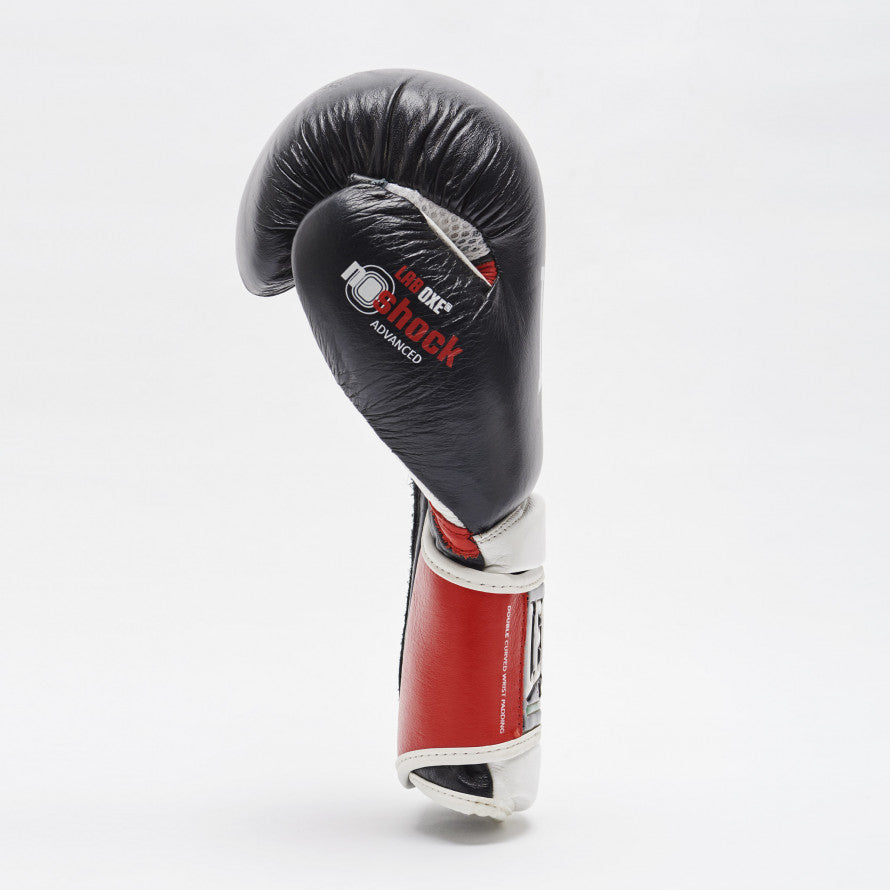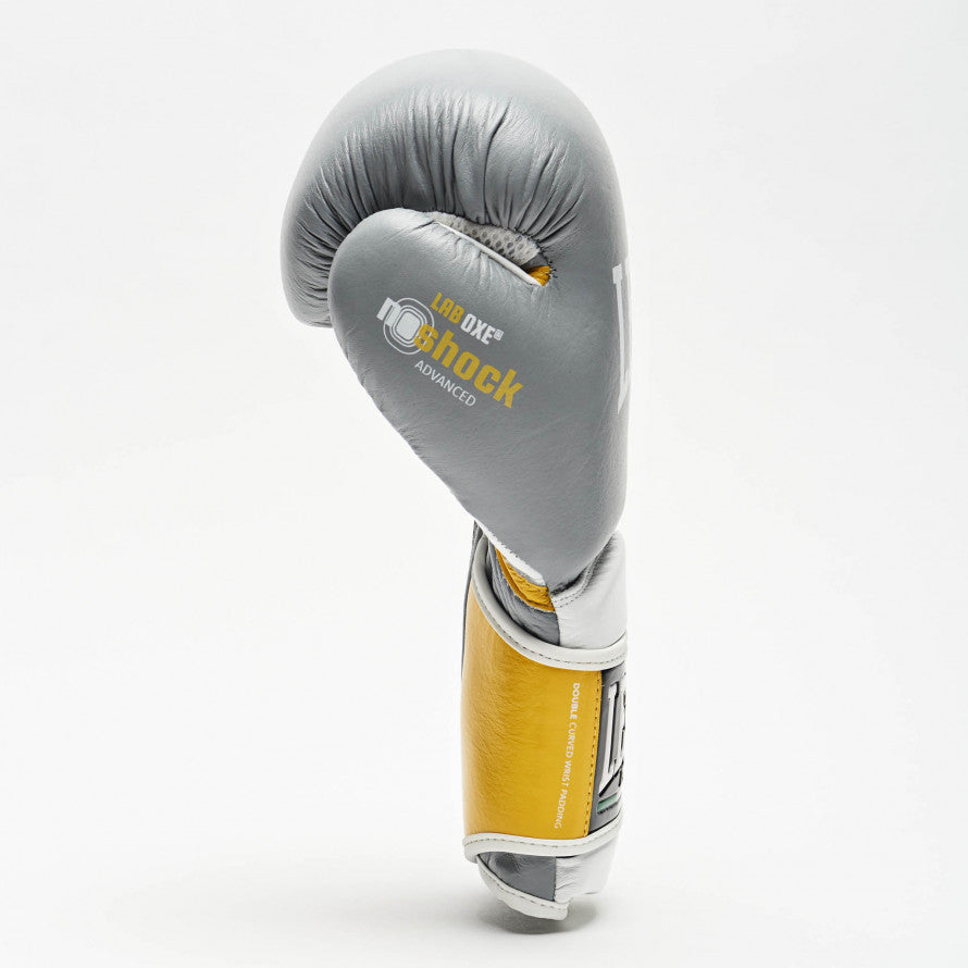 Leather glove characterized by a pre molded PU padding and by the curved cuff made up of two innovative parts that ensure stability and double protection on the wrist (2WP).