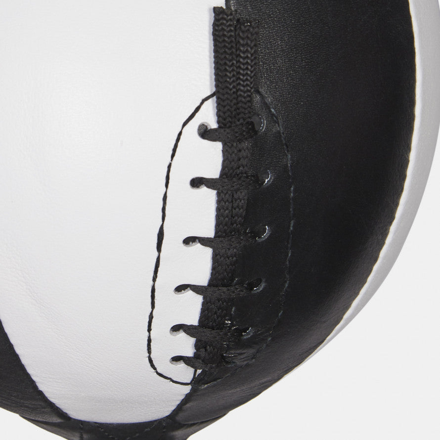 Professional double-end punching ball is crafted for intense gym use. Selected full grain leather shell is precision sewn for lighting speed and rapid rebounds.