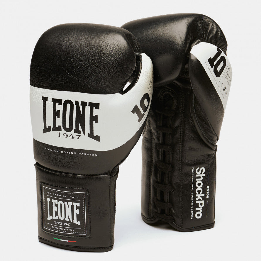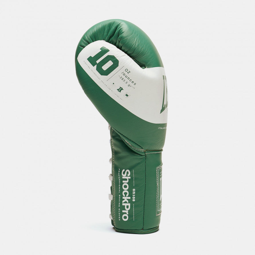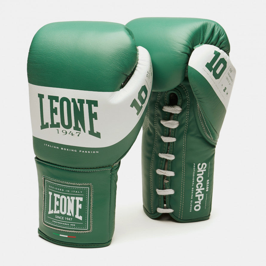 From the research and development department LABox”e by Leone1947 arrive the Shock PRO boxinggloves, renewed version in structure and materials, though preserving the look that led this model to be one of the most iconic and representative of the Italian brand. The international experience made during the using of Shock gloves during Wrold Title mathces has allowed to study a narrower and longer ergonomic fit, ideal for a match without the exclusion of blows. The multi-layered coating was designed to support the new structure, balancing comfort and tightness to perfection. New details enrich t”he elements taken from the previous model.The classic red color is reinterpreted in a darker and more elegant version, while a new green comes in the series, a reference to the tradition of some 90s models.