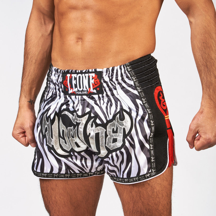 The incomparable quality of products Made in Thailand combined with the Leone 1947 tradition, they come alive in a unique and new line dedicated to all Muay Thai lovers. This “Bangkok” shorts of Leone – Made in Thailand model represents the sportswear of excellence worldwide, thanks to the quality of materials and the finishings. it is characterized by a loose rip which allows maximum freedom of movement and by a very tough elastic waist-band in order to ensure the best fit. It shows the traditional Mongkon and the thai flag embroidered on the side of the legs