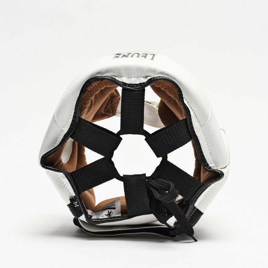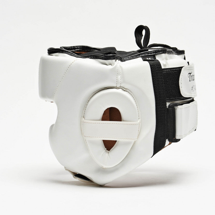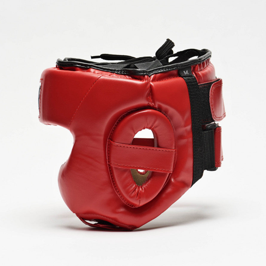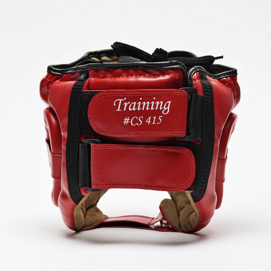 Training headgear, crafted with impeccable fit, styling and material shell with low pile inside liner for comfort, security and moisture wicking training. Complete with oversized ear padding and cross strap, hook-and-loop fastener behind the nape, elastic strap and fastener on top, and adjustable chin strap to assure a professional fit every time.